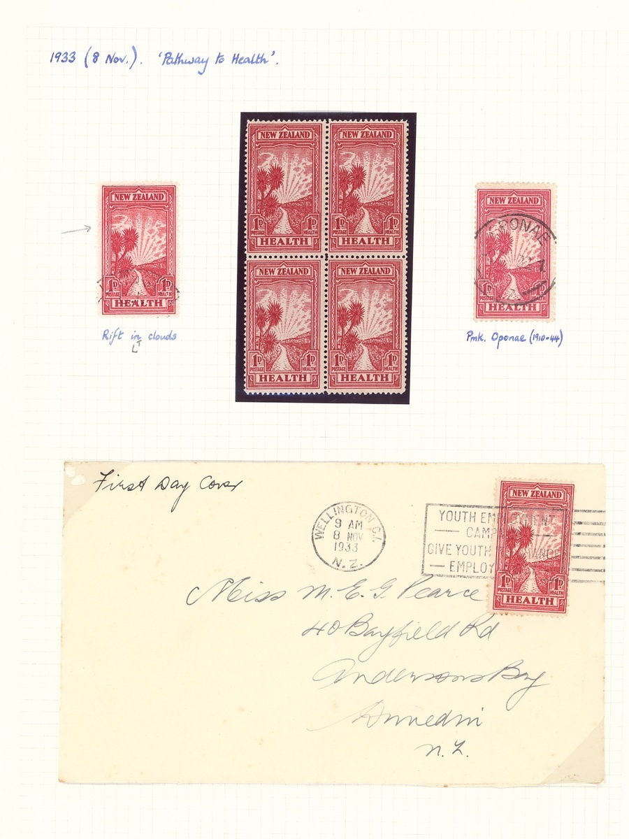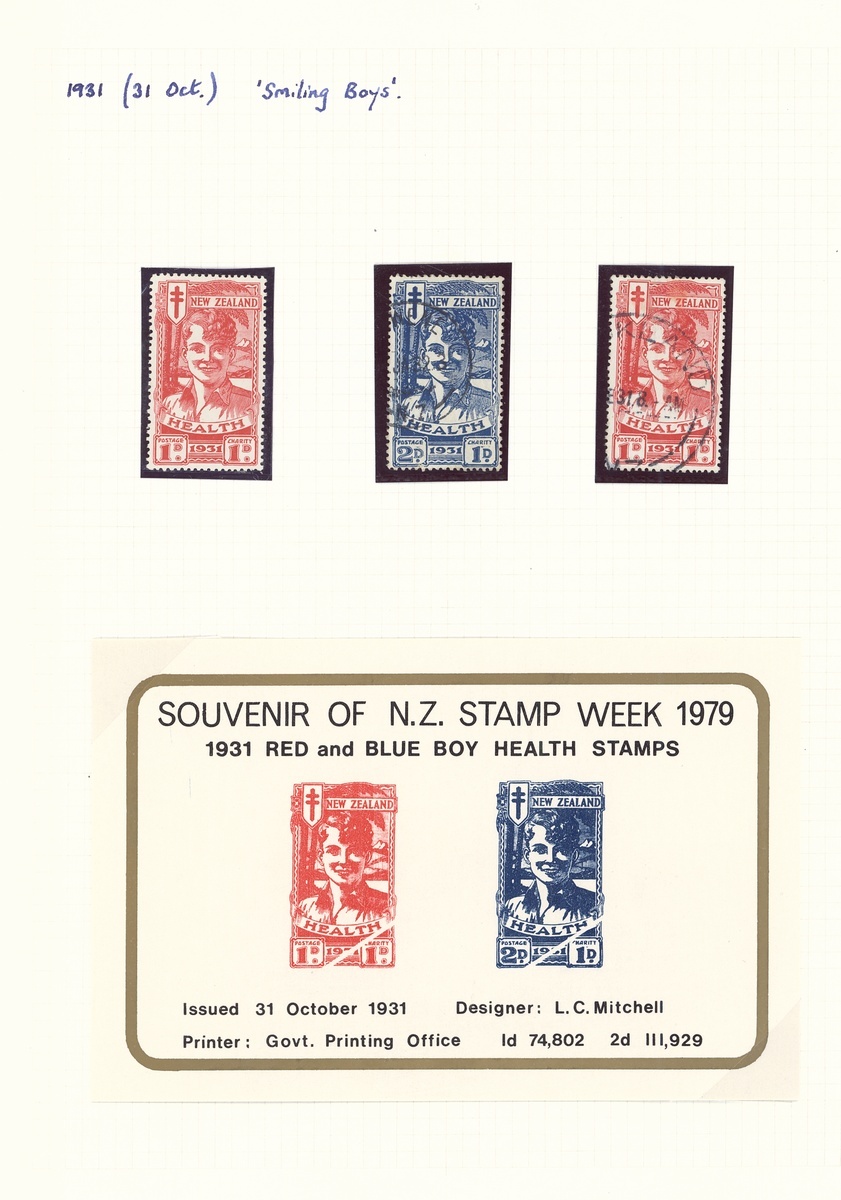 1929-63 mint and used 'Health' collection in an album including 1929 mint (3) and used, 1930 mint (3) and used on cover, 1931 Smiling Boys 1d. mint and both values used, also 1d. used on cover, 1932 Hygeia 1d. mint (5) including a block of four and used including on covers, 1933 with mint (11) including varieties and used, 1934 including mint, used and used on cover, 1939 with used blocks of four, used on first day, etc., later sets including mint, mint blocks of four, used, first day covers, etc. to 1963, 1995 "Teddy Bear" variety, a chiefly good to fine collection. CP cat value in excess of $6,500