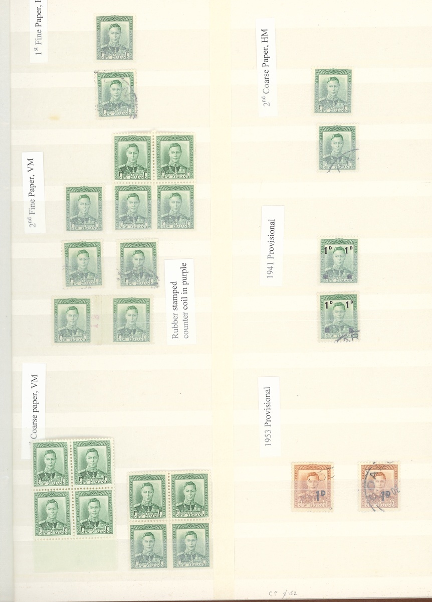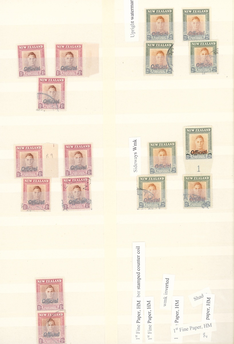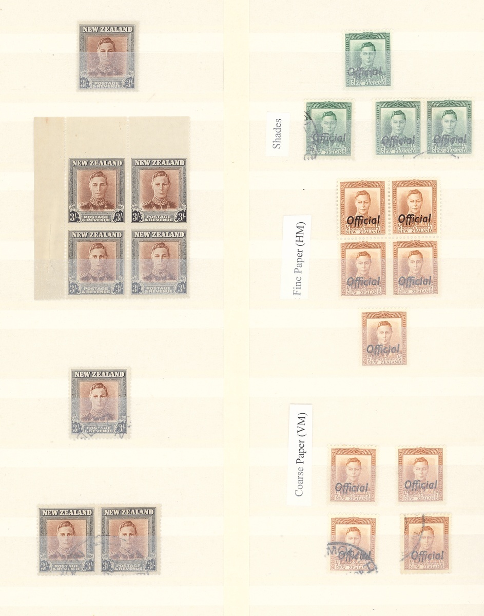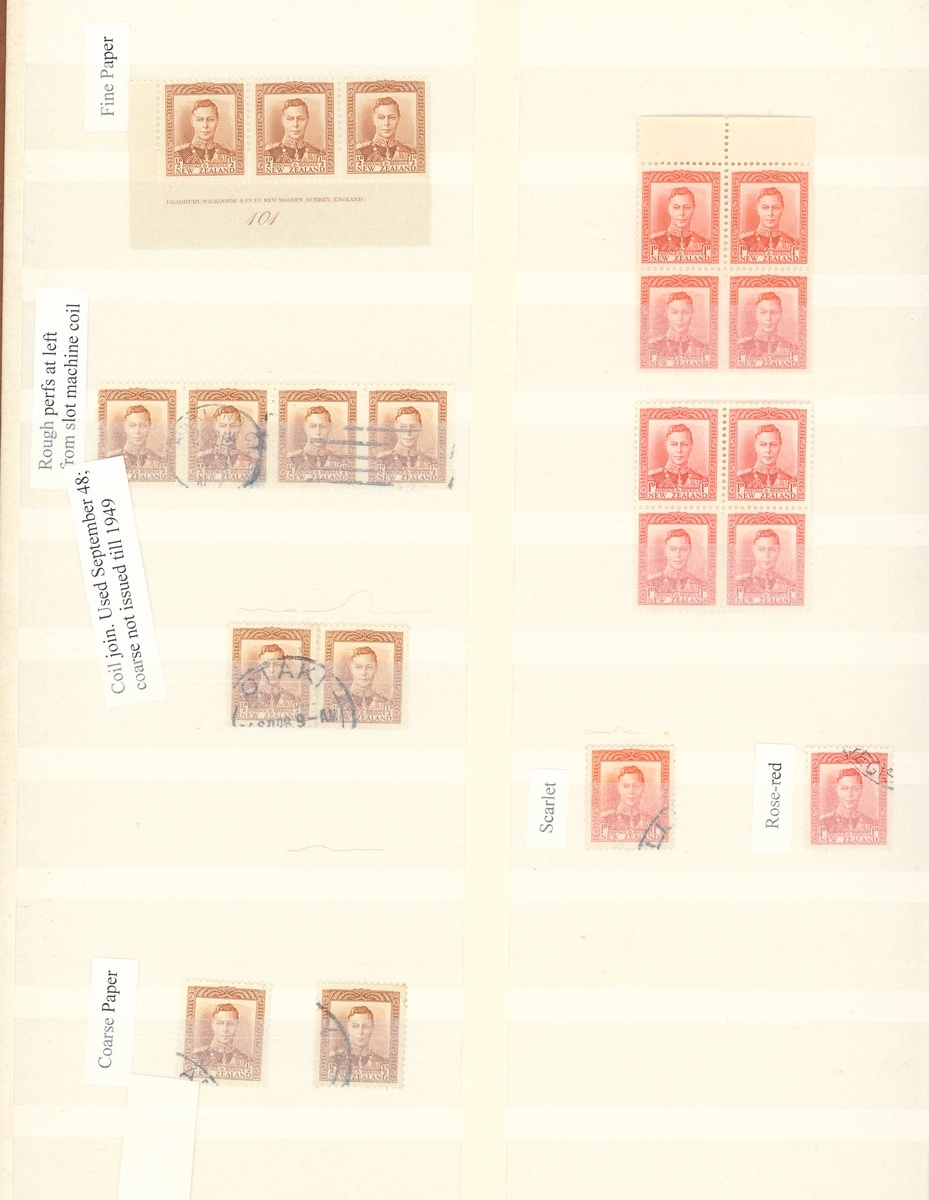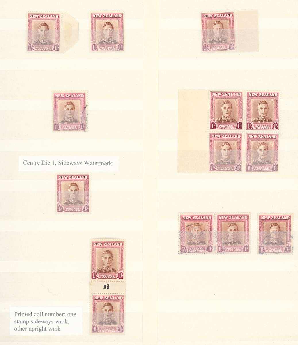 1938-47 mint and used collection in a stockbook including an essay in green, a range of the issued stamps including multiples of four and as large as six, some with imprint, also a range of shades, paper types, coil pairs including 1/- pair with one watermark upright and one sideways, Officials with mint multiples, etc., chiefly fine. CP $3,800