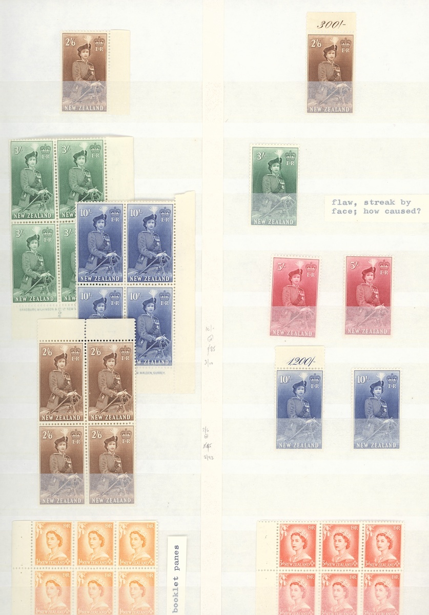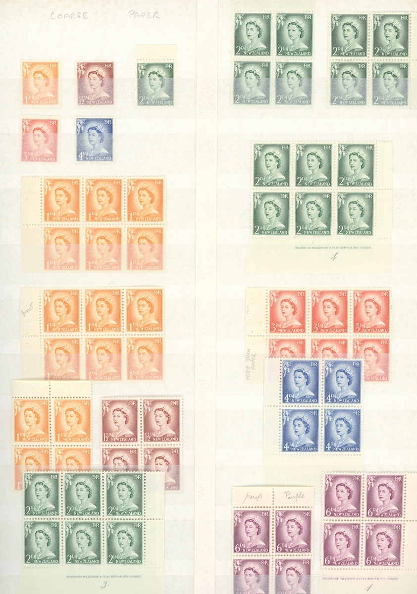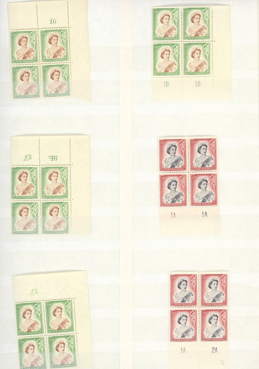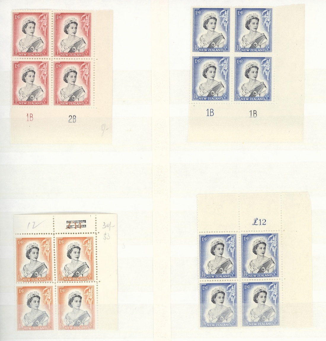 1953-61 mint and used collection on stockpages including 1953-59 set to 10/- in blocks of four, most with imprint, a range of booklet panes of six, imprint blocks, used blocks of four, 1958 surcharges including 2d. on wrong stamp both mint and used, later surcharges, first day covers, 1954-63 Officials including mint blocks of four and 4d. printed on the gummed side, etc., chiefly good to fine. S.G. Cat. £2,100