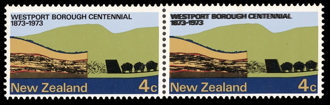 1973 Coal Mining and Pasture 4c., horizontal pair, the right hand stamp variety black doubly printed, lightly mounted mint. S.G. 998 var.; CP S164a (Y), $1,300