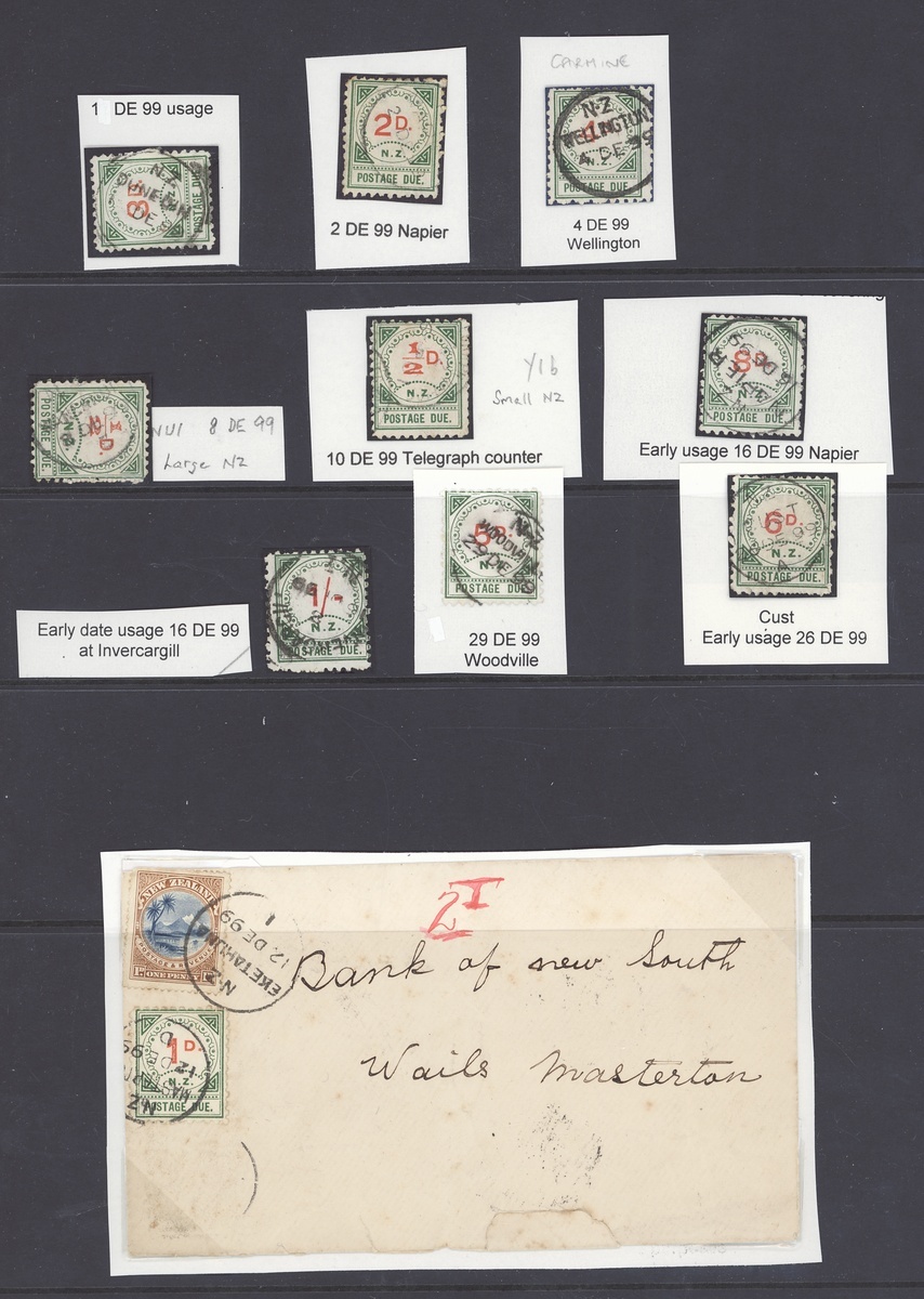 1899-1900 first type used group (10) on a Hagner page comprising ½d. (2), 1d. used on cover to 'Bank of New South Wails' (sic), early used examples of 2d., 3d., 4d., 5d., 6d., 8d. and 1/-; all used with early postmarks from almost all different post offices within the first month of issue (December 1899), a fine group, hard to assemble. S.G. D1-D16 group, £550+