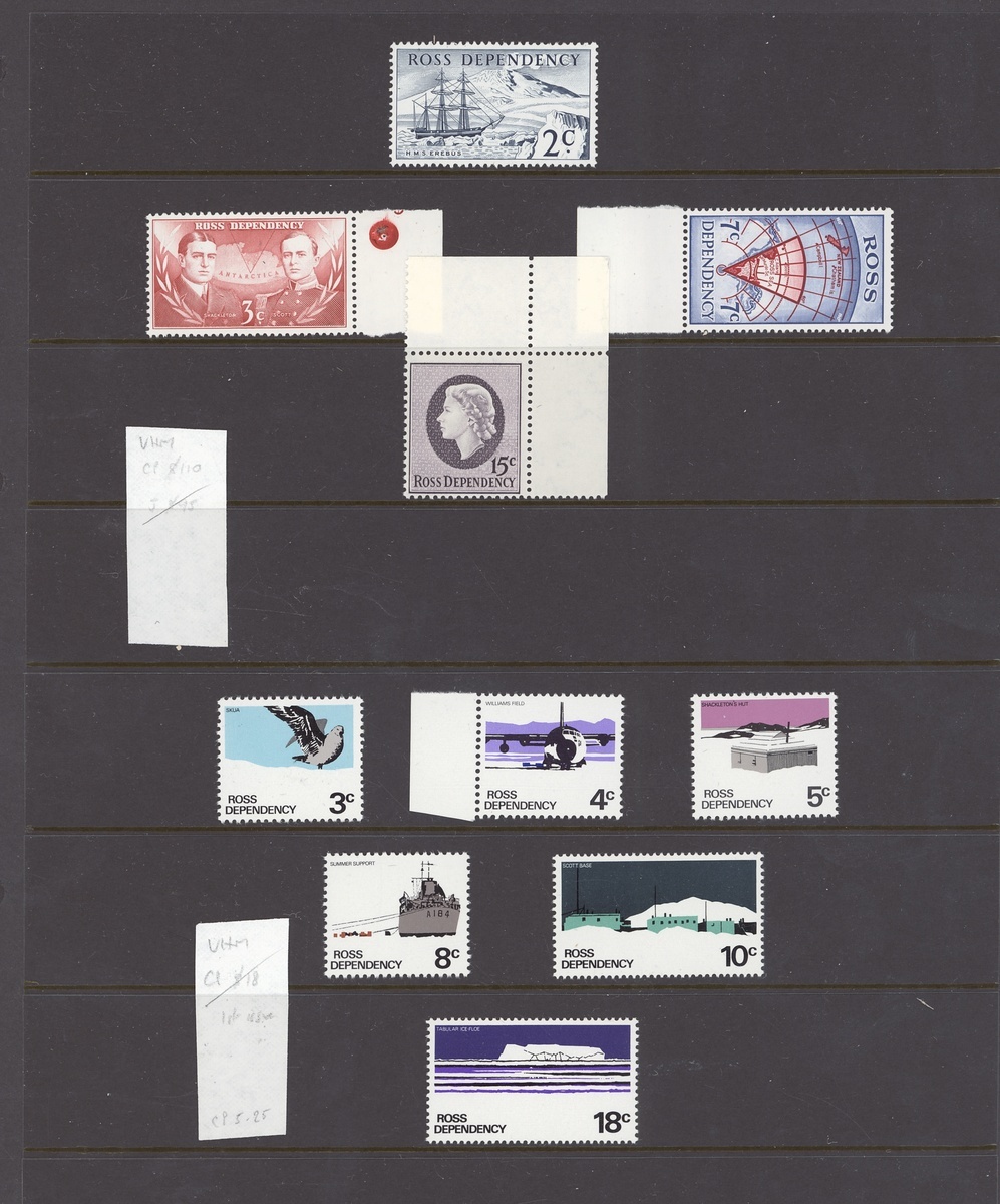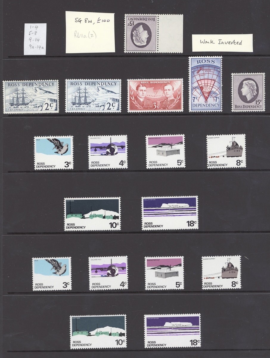 1907-1995 collection in an album and sheet album including 1909 KEVII land 1d. block of four used, 1952 and 1953 covers from Campbell Island , a range of Ross Dependency issues with first decimal set mint, including 15c. with watermark inverted, three sets also on cover, 1974 'Overseas Vote' electoral cover sent from Scott Base, later sets mint and used, 1994 Wildlife set with all values to 50c. in complete sheets of one-hundred and higher values in imprint blocks of ten; chiefly good to fine