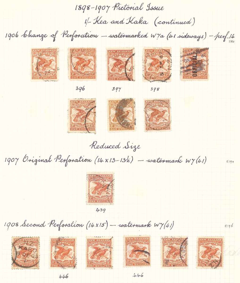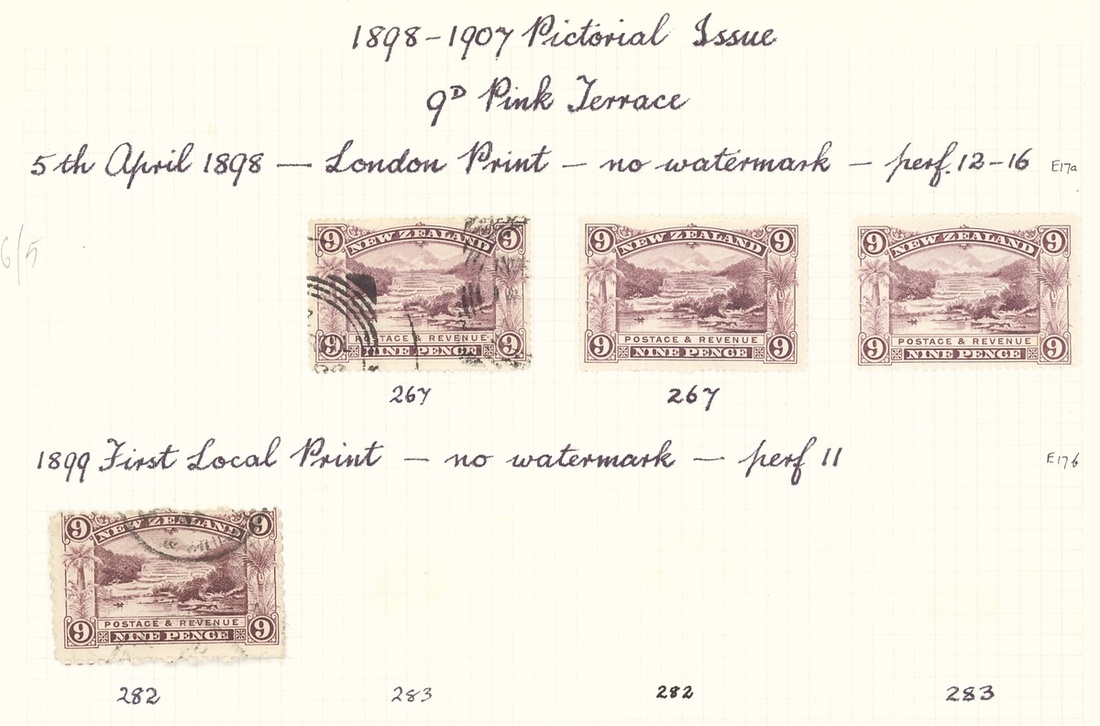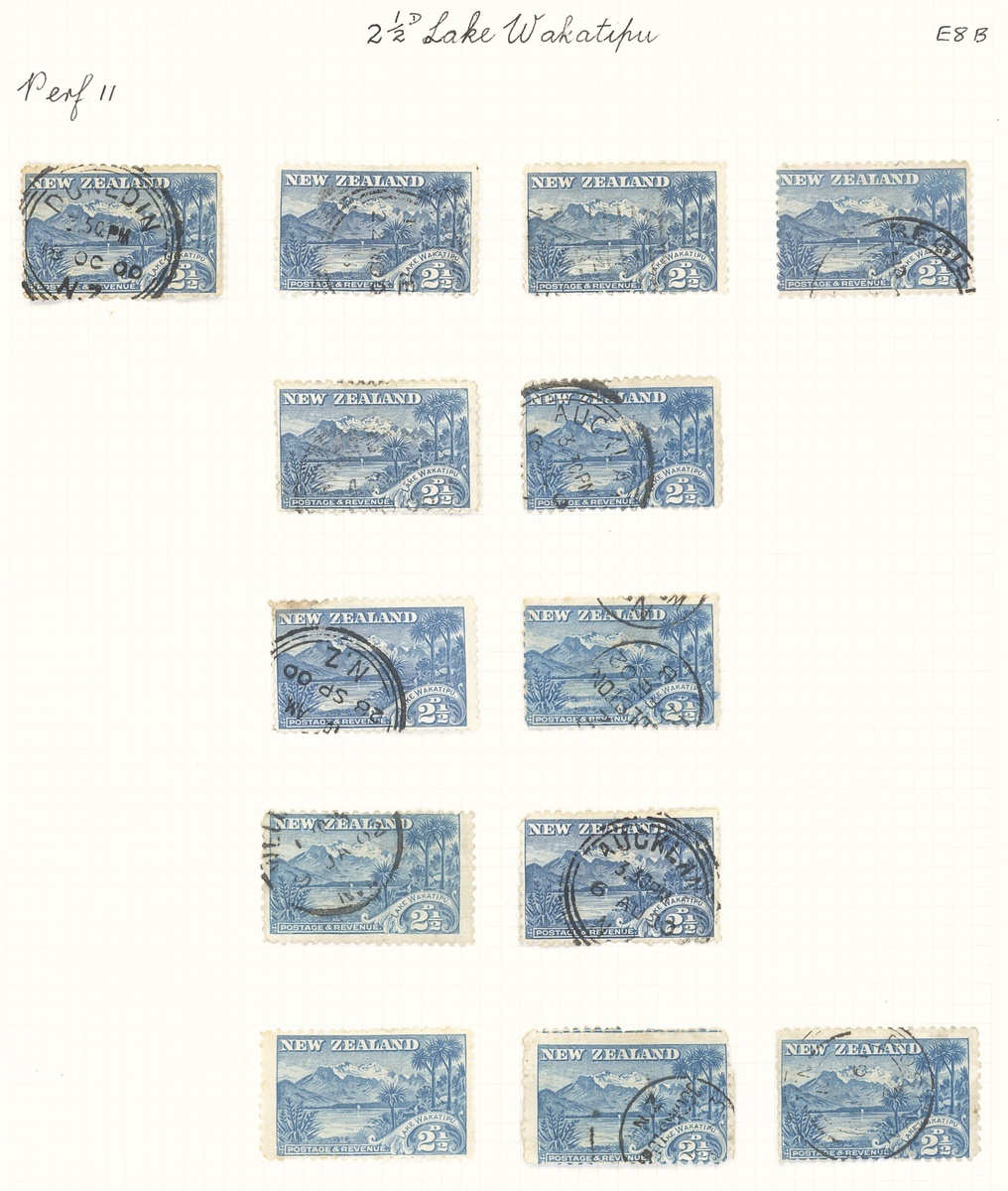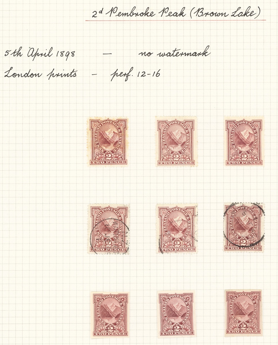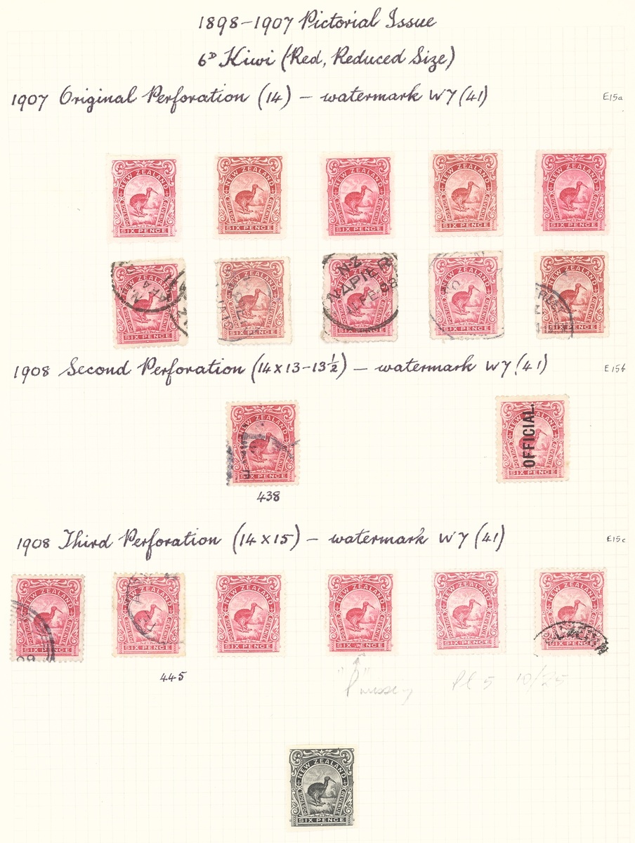 Collection in a blue album, including ½d. with proofs, mint block of six, shades, re-entry, 1d. Taupo with mint block of four, strip of three, 1d. White Terrace with 4 mint blocks of four, shades, proofs, 1½d. with perfs., shades, [R1/12] re-entry, 2d. Pembroke Peak with proofs, perf. varieties, local print with blocks, shades, re-entries, 2½d. with shades and printings, 3d. shades and perfs., [R10/] re-entry contained in a corner block of four, 4d. White Terrace [R8/8] re-entry contained in a pair, 4d. Taupo with all printings, shades, re-entries, watermark varieties, 5d. Otira Gorge with printings, shades, re-entries, 6d. Kiwi with shades, small format with printings, proof, 8d. War Canoe with shades, printings, re-entry, 9d. printings, shades, re-entries, 1/- with printings, shades, small format, 2/- shades, 5/- London print (2 used). no wmk., perf. 11 unused and used, etc., chiefly good to fine