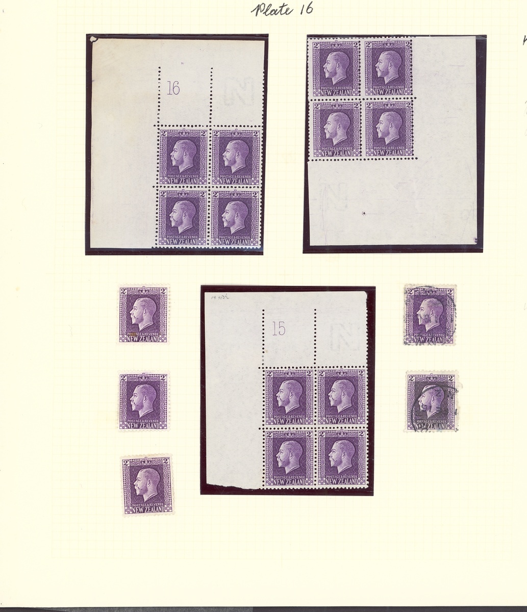 2d. violet, mint (29) and used (6) collection on pages, including Plates 15 and 16 corner blocks of four (Campbell Patterson $800 each), two perf. pairs mint and used, two perf. block of four, etc., chiefly fine