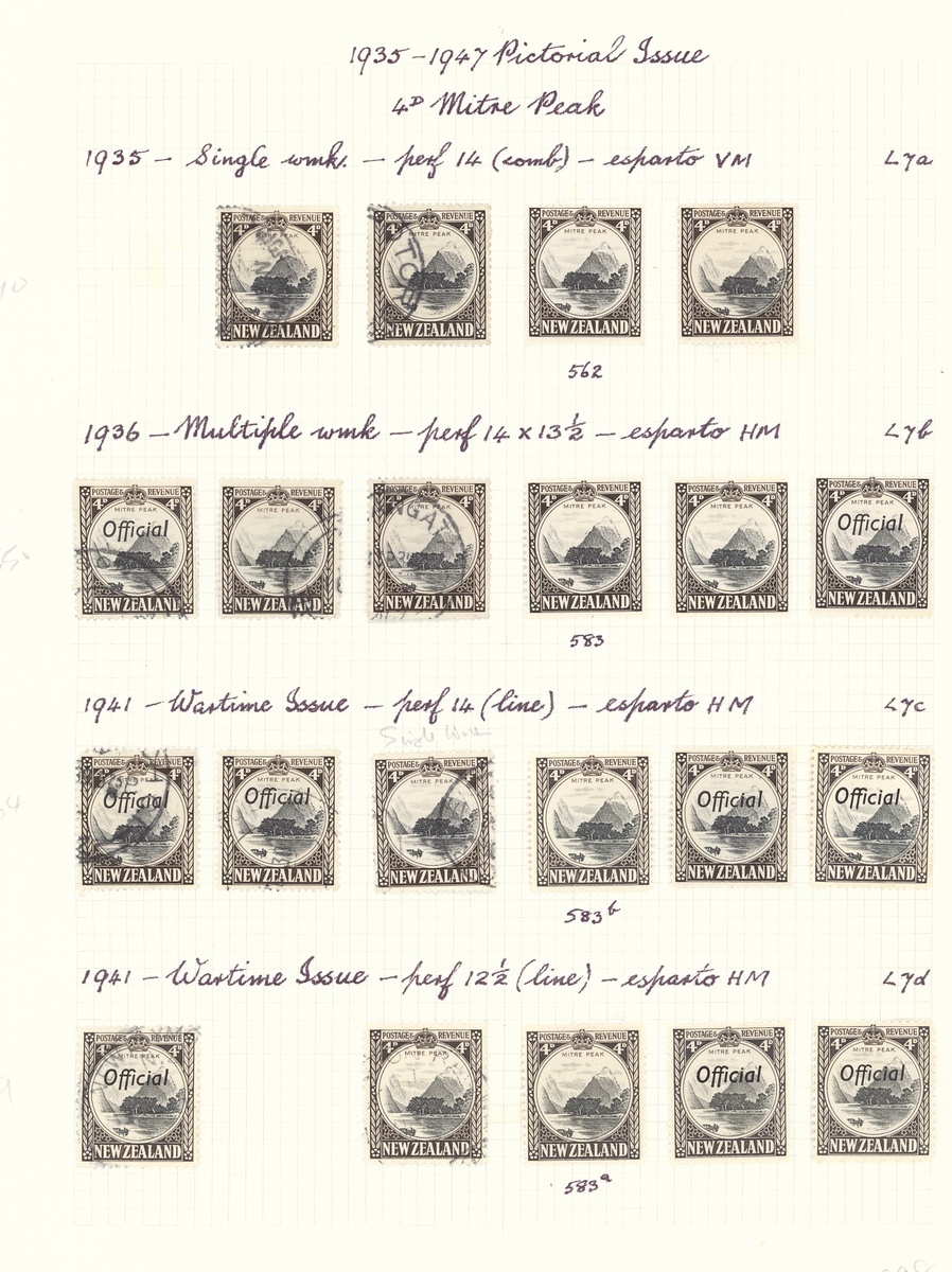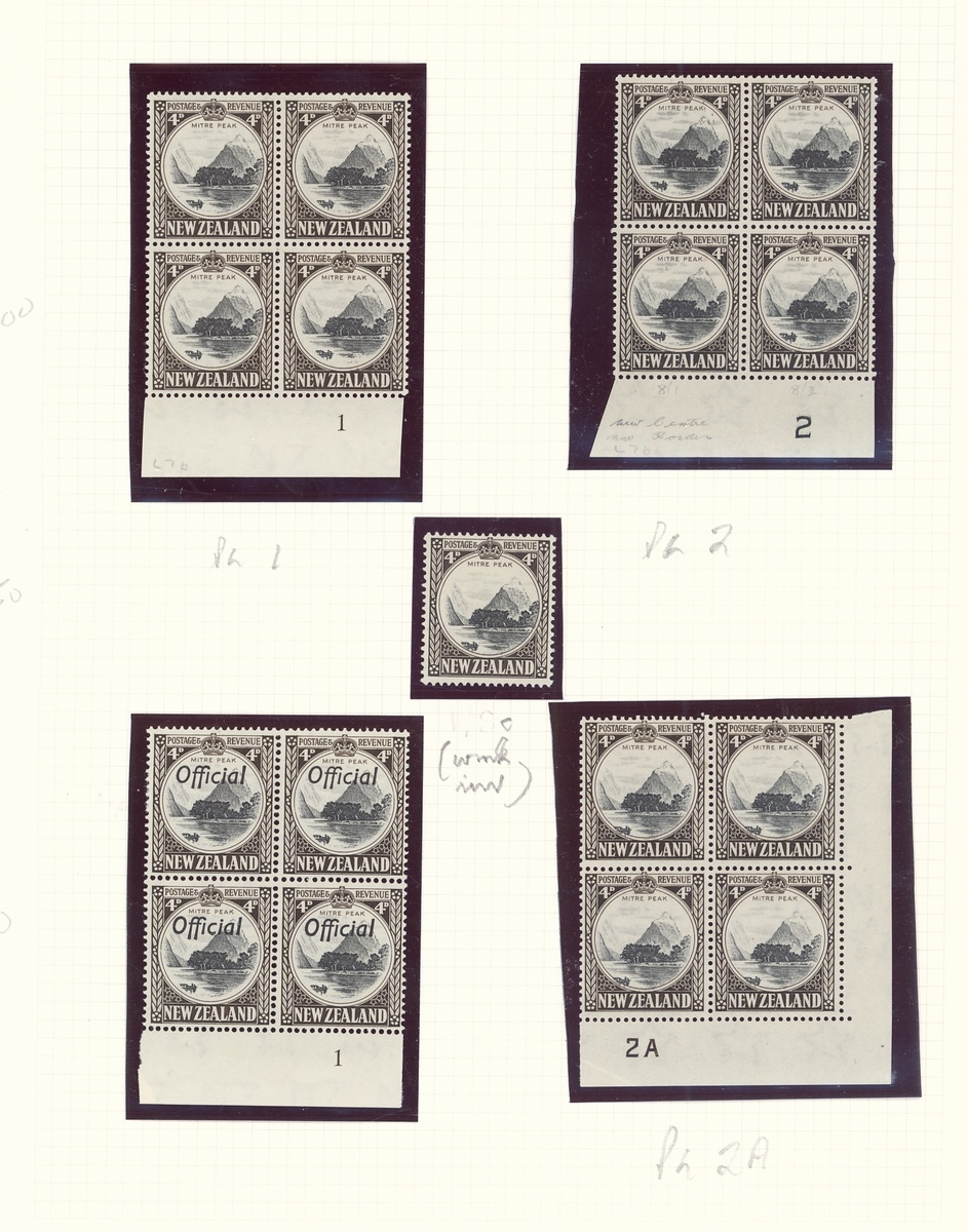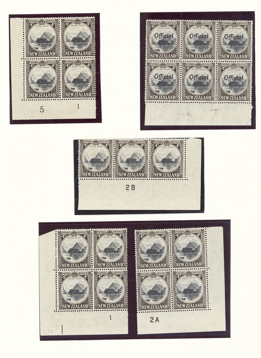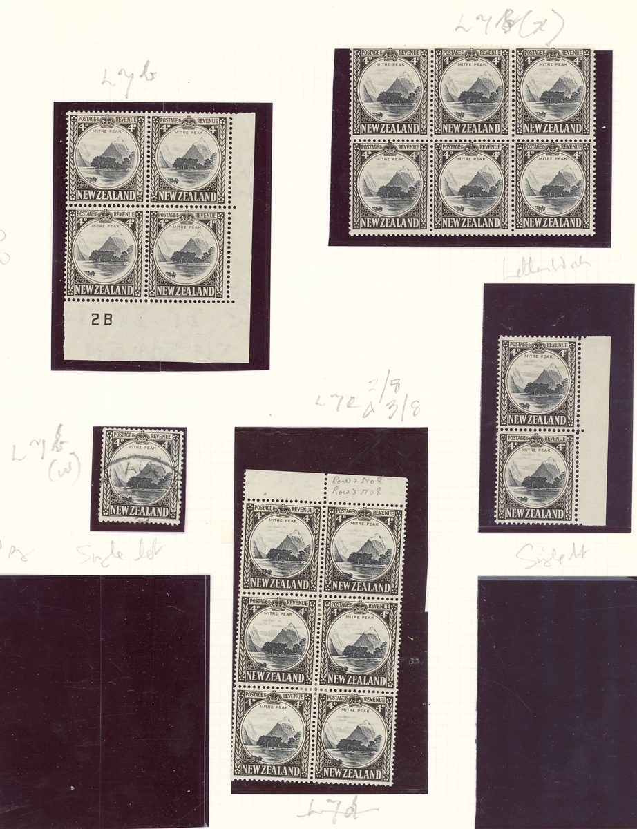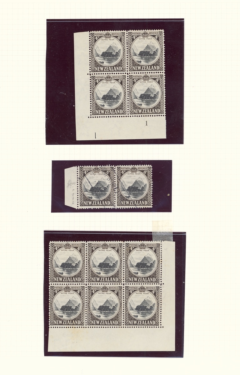 4d. black and sepia, Mitre Peak, mostly mint collection (112) on pages, including both watermarks, Plate blocks, retouches, inverted watermarks, Officials, etc., chiefly good to fine