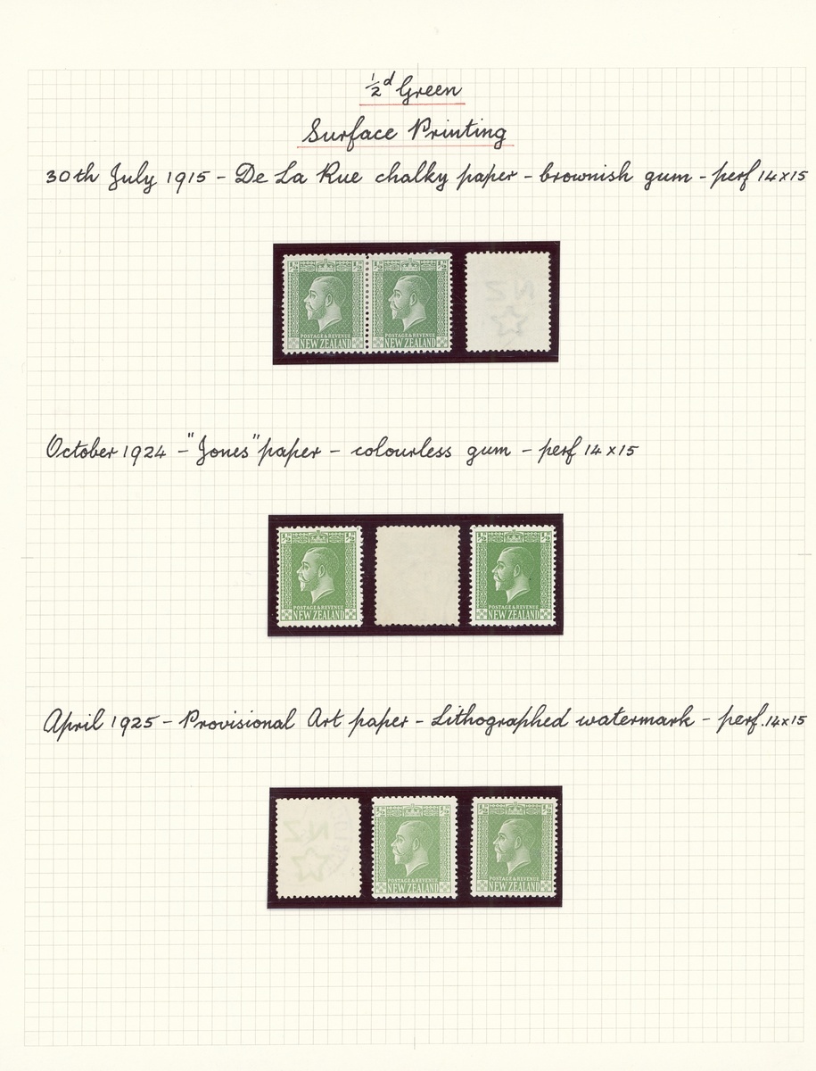 George V Collection on pages, sorted by values and printings, including 1915-33 ½d. "