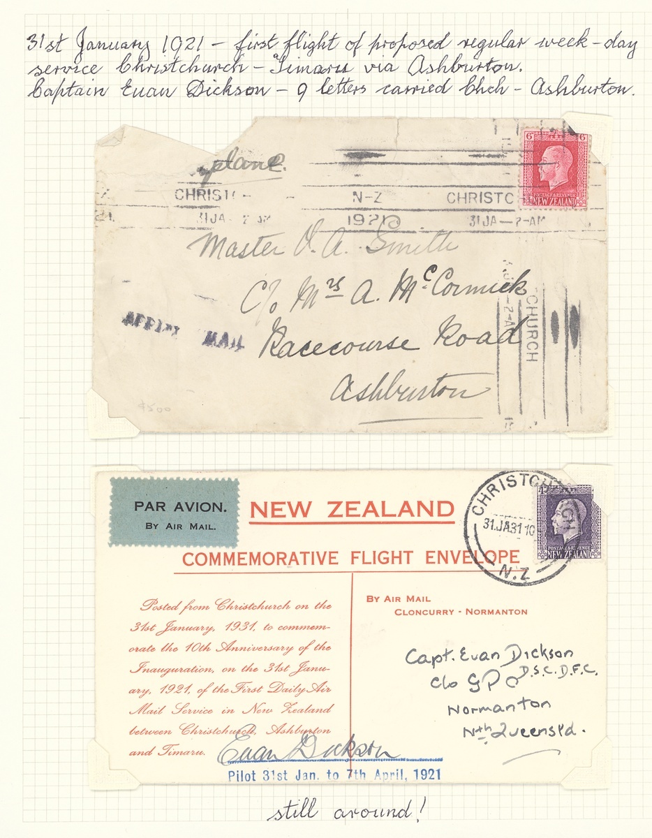 1921 (31 Jan.) Christchurch-Ashburton first flight, envelope franked 6d. with roller cancellation, "