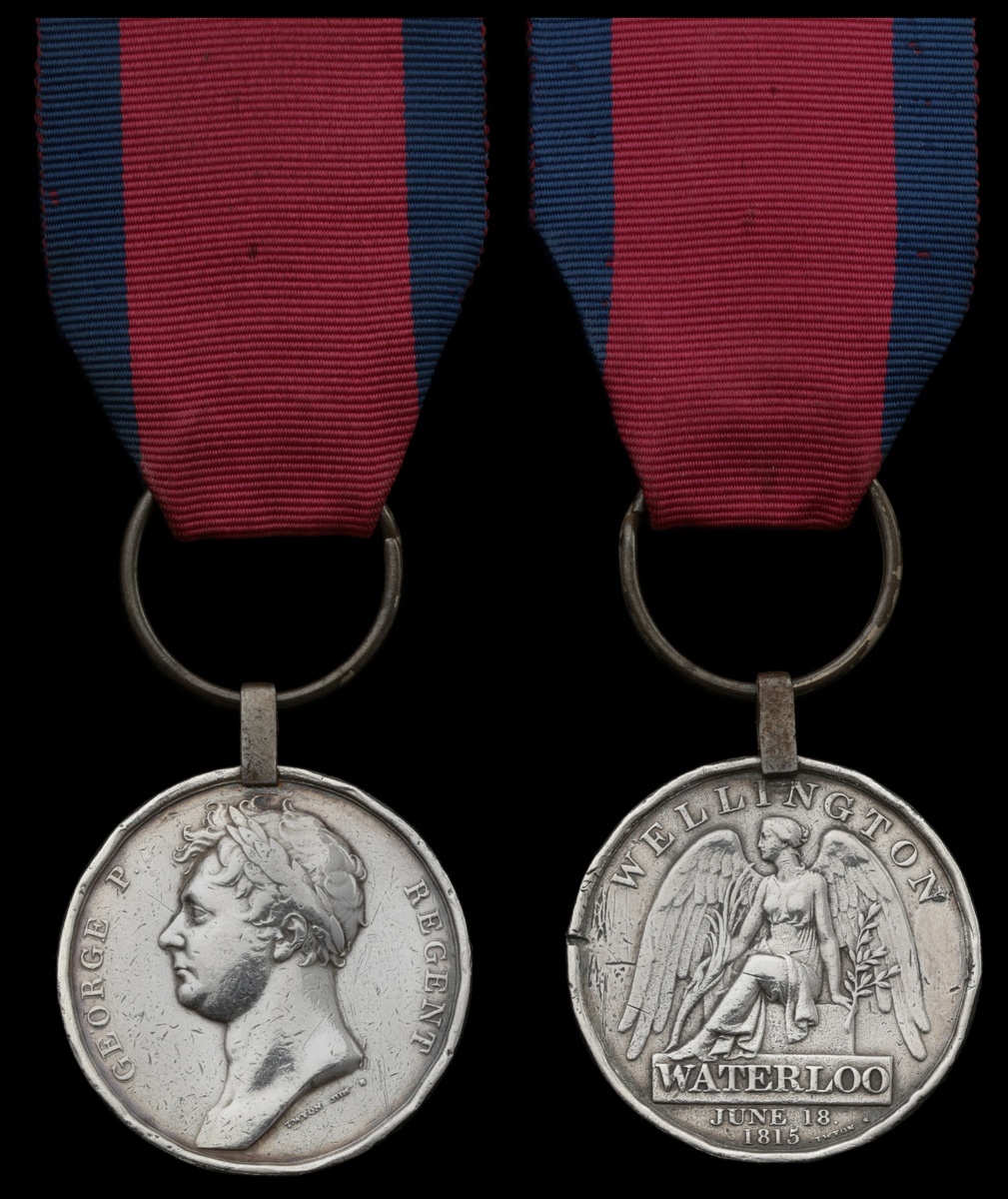 Waterloo 1815, naming all but erased, polished, edge knocks and traces of brooch-mounting, good fine
