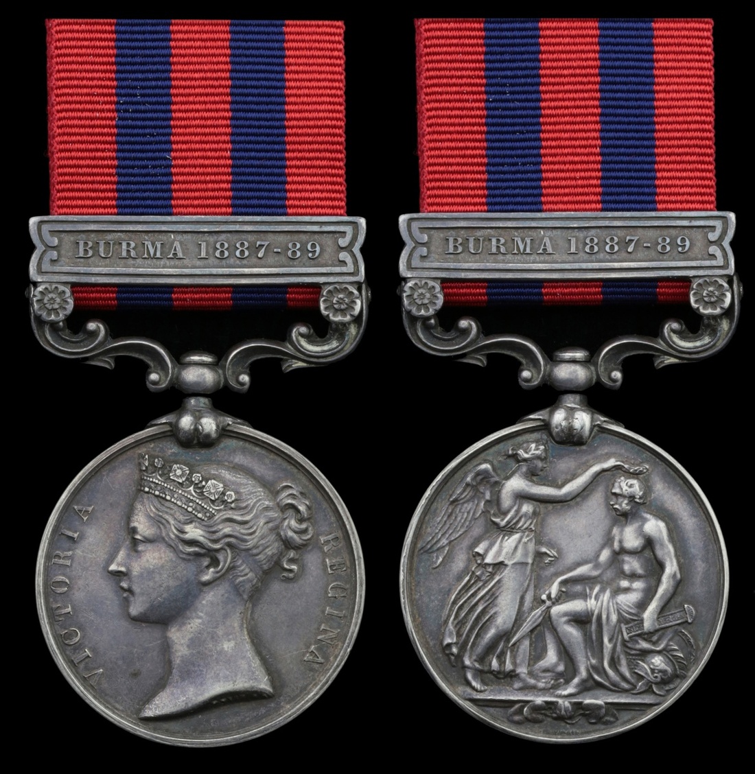 John West was born in 1857, at Boylstone Derbyshire and enlisted with the Rifle Brigade on 15 October 1879. Posted first to the 1st Battalion on 30 December 1879 until 3rd Battalion on 30 August 1880. Embarking for India on 27 September 1881 aboard the Jumna with the 4th Battalion, Rifle Brigade. West served here until 5 December 1888 when he was posted to Burma for service against the Burmese resistance movements causing unrest throughout the country. His character at this time was noted as ‘very good’, despite the difficulties of the climate which saw him hospitalised on more than one occasion for ‘debility’ and ‘ague'. It is notable that on one occasion the hospital he attended was at Mandalay, suggesting that he was posted in the north of the country. Returning to India upon the end of the conflict on 21 October 1889 West served a further two years in the country with the 3rd Battalion, before travelling home on 22 February 1892. He was demobilised on 19 April 1892; sold together with copied service records and medal rolls.