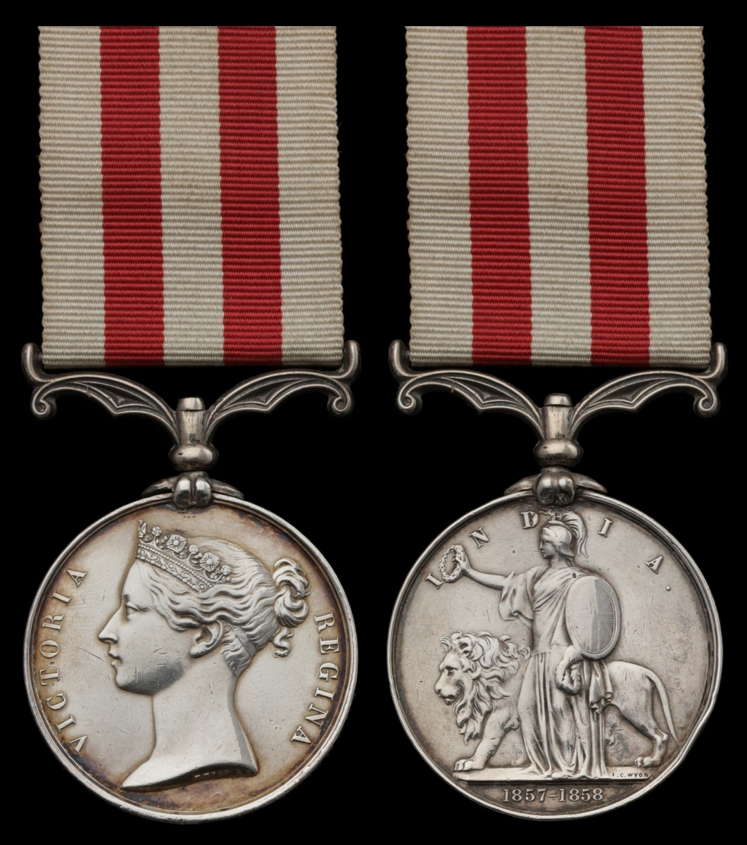 Indian Mutiny 1857-59, no clasp (J. McClann, 1st Bn 6th Regt.), polished, claw loose, minor scratches, pitting and edge knocks, good fine