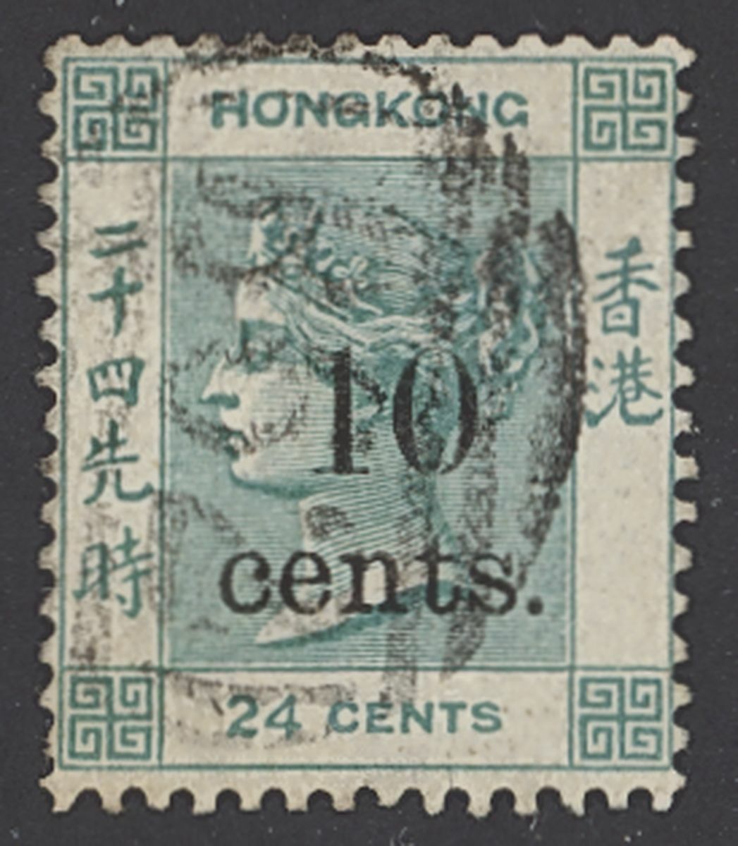 1880 10c. on 24c. green variety watermark inverted cancelled with light "B62" obliterator; well centered, fine and rare. S.G. 27w, £700