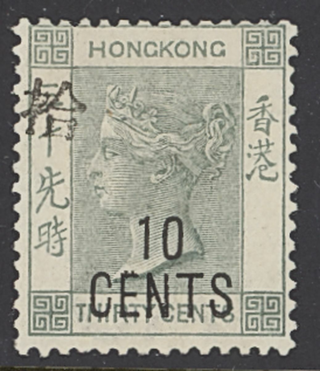 1898 10c. on 30c. grey-green variety Chinese character large, large part original gum lightly aged, light horizontal bend otherwise fine and scarce. B.P.A. Certificate (2004) S.G. 55c, £1,000