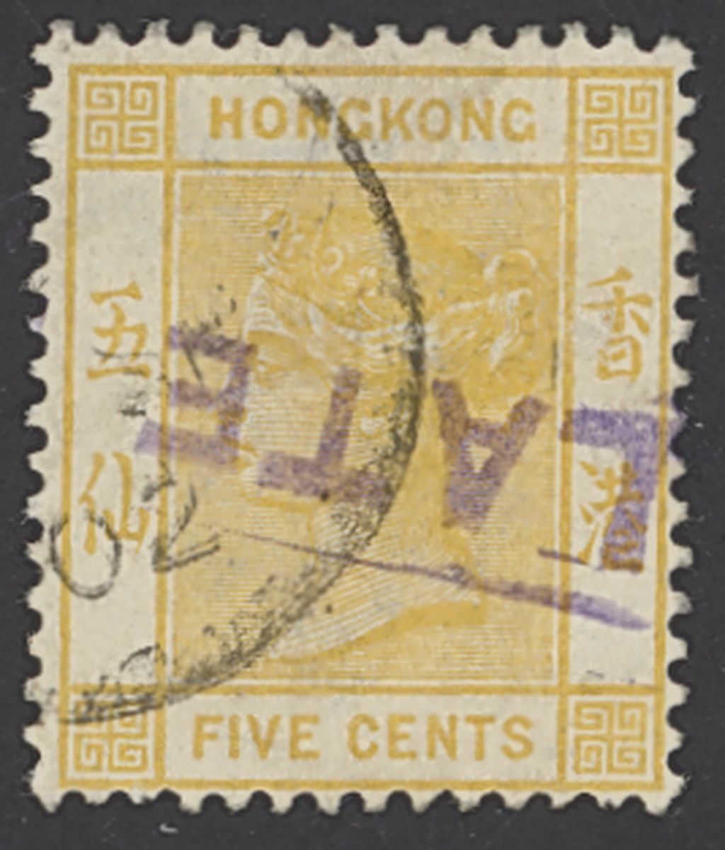 1900-01 5c. yellow variety inverted watermark cancelled with part c.d.s. and (Too) "