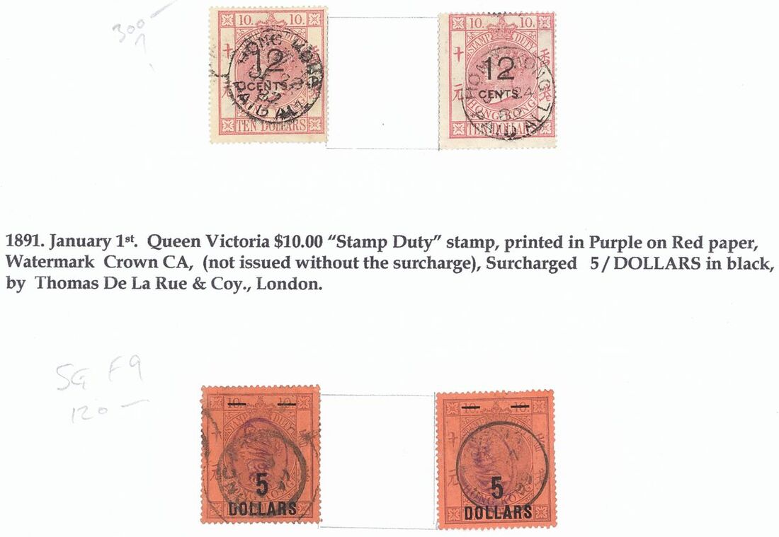 1874-1902 used selection (9) arranged on two written up pages including 1874-1902 perf 15½x15 $2, $3 (3, one vertical pair and a single), $10, 1880 12c. on $10 (2), 1891 $5 on $10 (2); mixed condition.