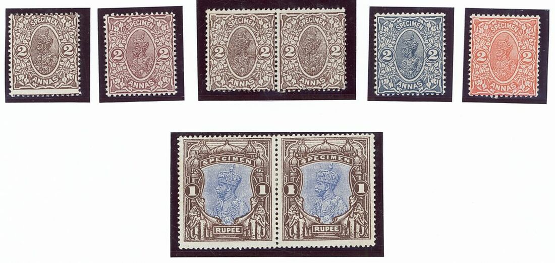 1925 Delhi Specimens, 2a. four in different colours, 2a. brown pair, 1r. blue and brown pair, original gum, a few small creases, fine
