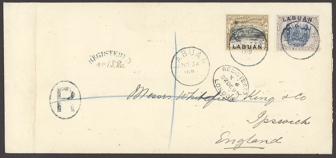 1897 (24 Nov.) Whitfield King envelope registered to Ipswich, bearing 1897 Pictorial 18c. and 24c. tied by