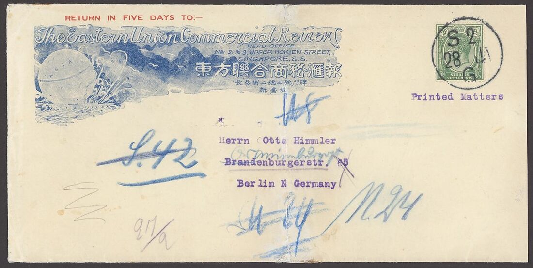1930? "The Eastern Union Commercial Review" envelope to Berlin, marked "Printed Matter", bearing 2c. green tied by