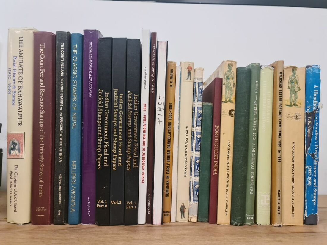 Philatelic History”, Gupta “A Handbook on Gwalior Postal History & Stamps”, etc, a useful specialist’s reference library with several difficult to find publications.