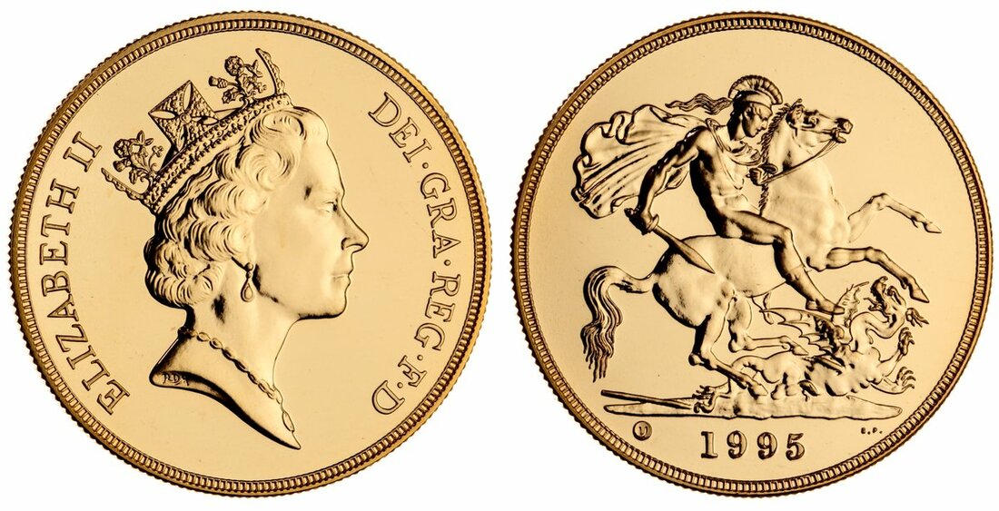 (g) Elizabeth II (1952- ), Brilliant Uncirculated Five Pounds, 1995, crowned head right, rev. St George and dragon, milled edge, 12h, 39.99g (Spink SE4), brilliant and as struck, in original Royal Mint case of issue, No. 0132. One of 1,000 struck