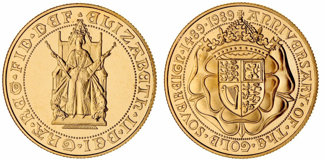 (g) Elizabeth II (1952- ), Proof Two Pounds, 1989, 500th Anniversary of the Sovereign, Queen enthroned in King Edward's Chair, rev. shield of Our Royal Arms ensigned by Royal Crown, double rose behind, milled edge, 12h, 15.98g (Spink SD3), some faint friction marks to obverse field, otherwise brilliant and as struck, in original Royal Mint case of issue, No. 0555
