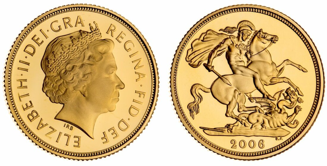 (g) Elizabeth II (1952- ), Proof Sovereign, 2006, crowned head right, rev. St George and dragon, milled edge, 12h, 8.00g (Spink SC4), small friction mark to mouth and surrounding field, otherwise brilliant and as struck, in original Royal Mint, No. 3396
