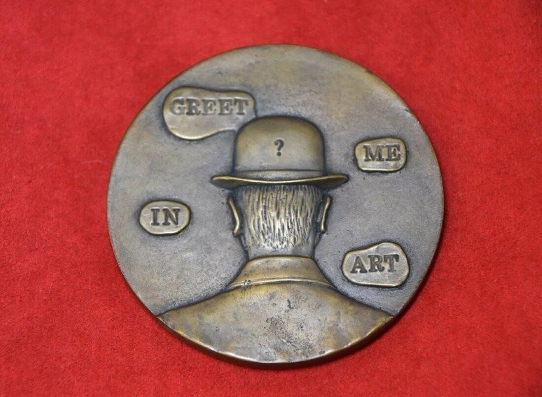 British Art Medal Society, Cast Bronze Magritte medallion, by Lawrence Birt, 1983, one of thirty medallions struck, in good condition