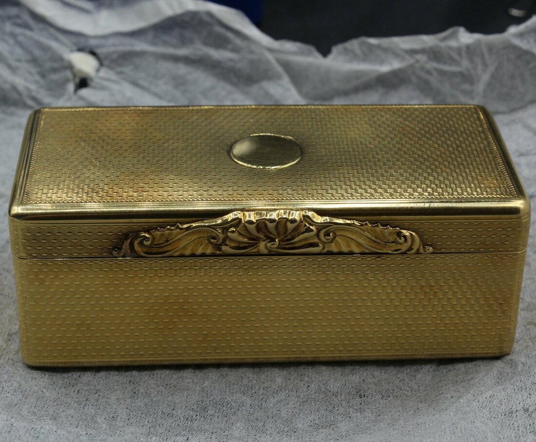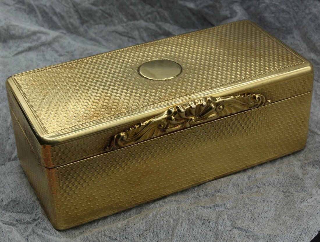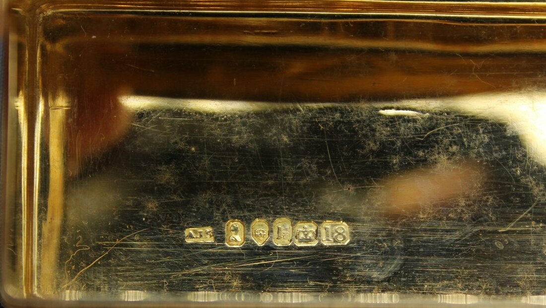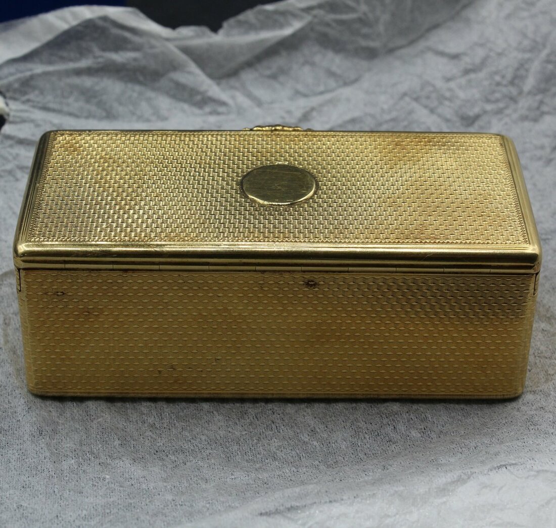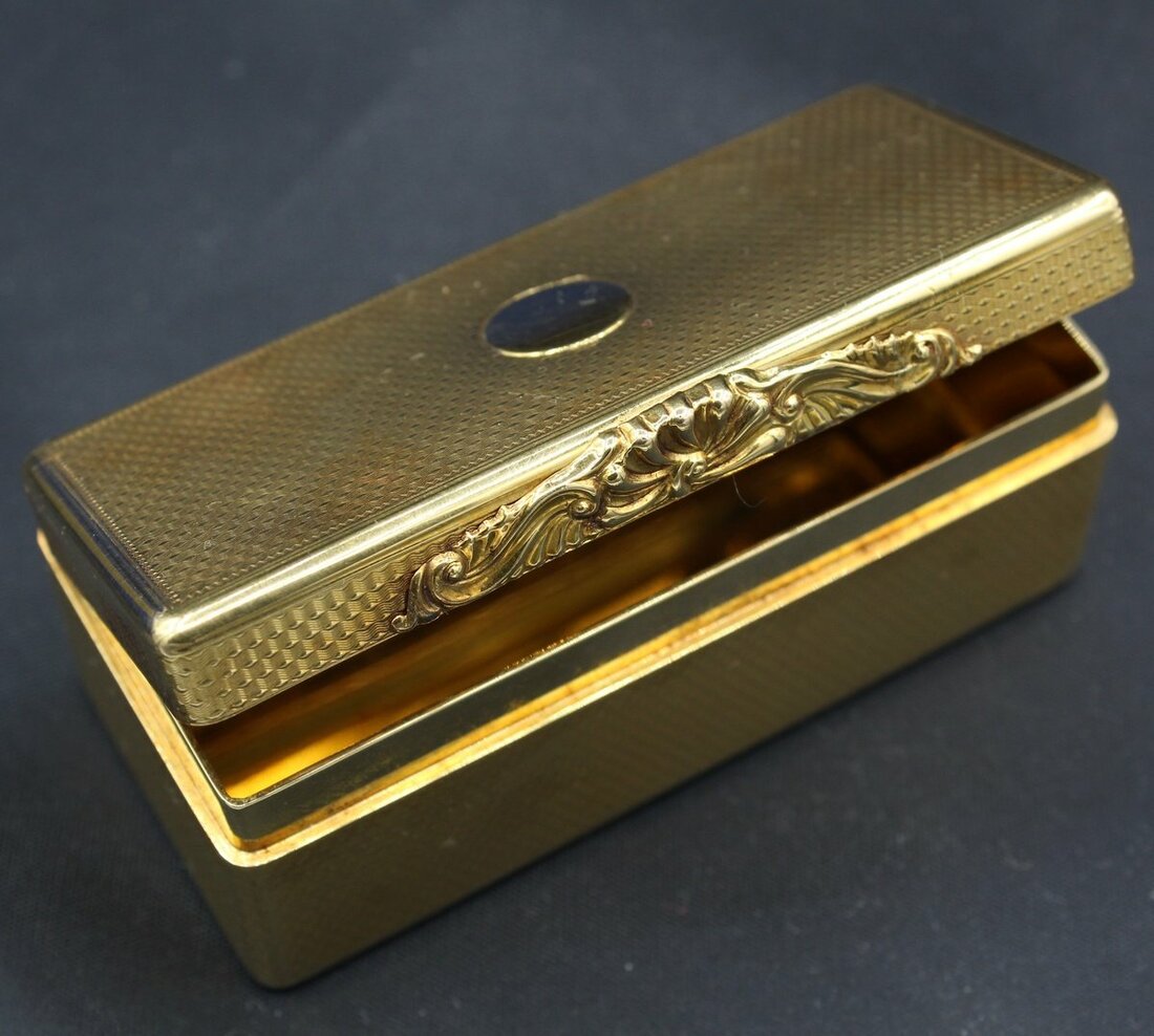 A Superb George IV 18ct Gold 'Snuff' Box, by A J Strachan, London, k [1825], 133.02g, in excellent condition, the cartouche unmarked and the hinge in perfect working order, some light merchant etchings on internal lid, otherwise good extremely fine, an exemplary showpiece