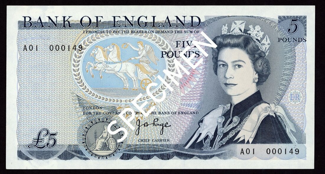 Bank of England, J.B. Page, £5, ND (1971), serial number A01 000149, (EPM B332), firs run low number, lightly pressed, good extremely fine