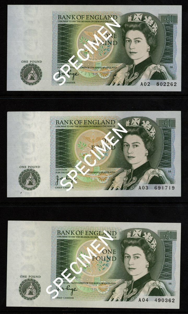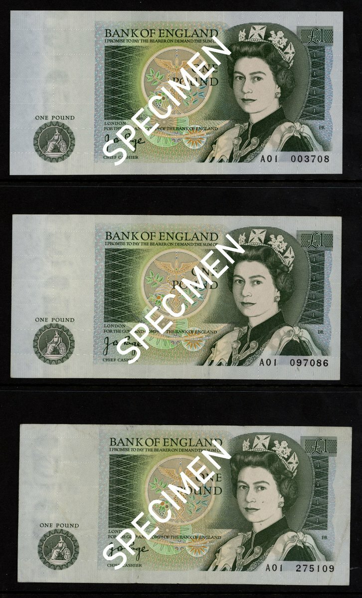 Bank of England, J.B. Page, a comprehensive group of £1 (86), prefixes A01 to A64, A66 to A79, (EPM B337), includes consecutive runs, with 9 A01, mostly uncirculated (86 notes)
