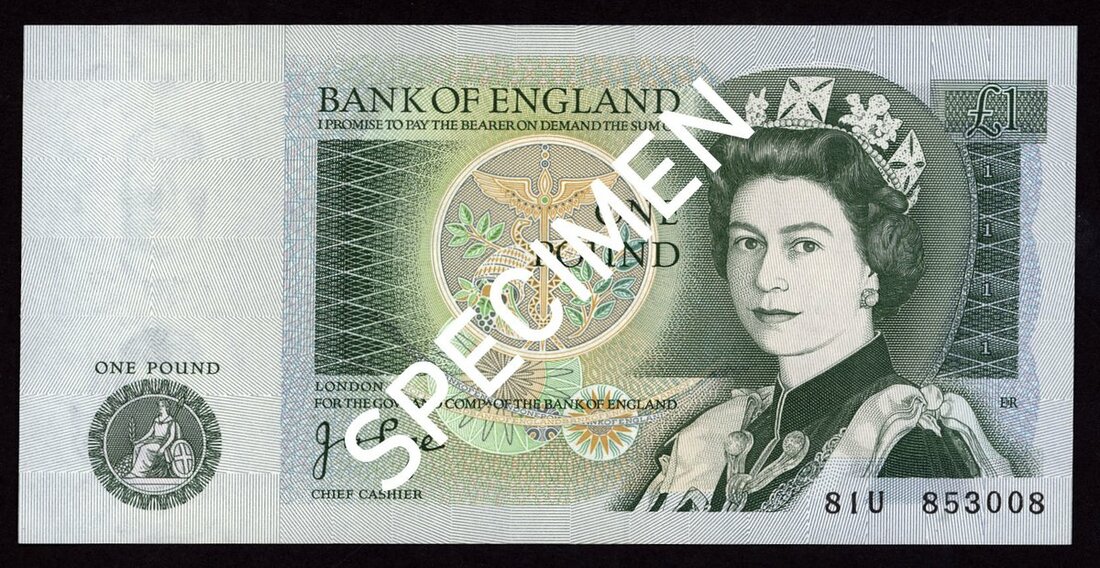 Bank of England, J.B. Page, experimental £1, ND (1978), serial number 81U 853008, (EPM B339a), with handling, about uncirculated