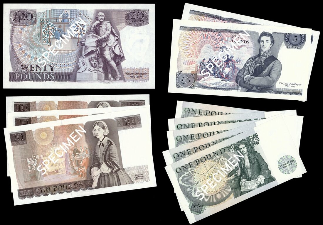 (EPM B341, B343, B343, B345, B346, B347, B349, B350), £20 GEF, CS01 £10 aunc, remaining unc (11 notes)