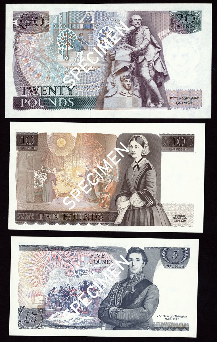 Bank of England, George Malcolm Gill, including £5 SE90 (last run), £10 DR01 (first run), £20 01L (first run)