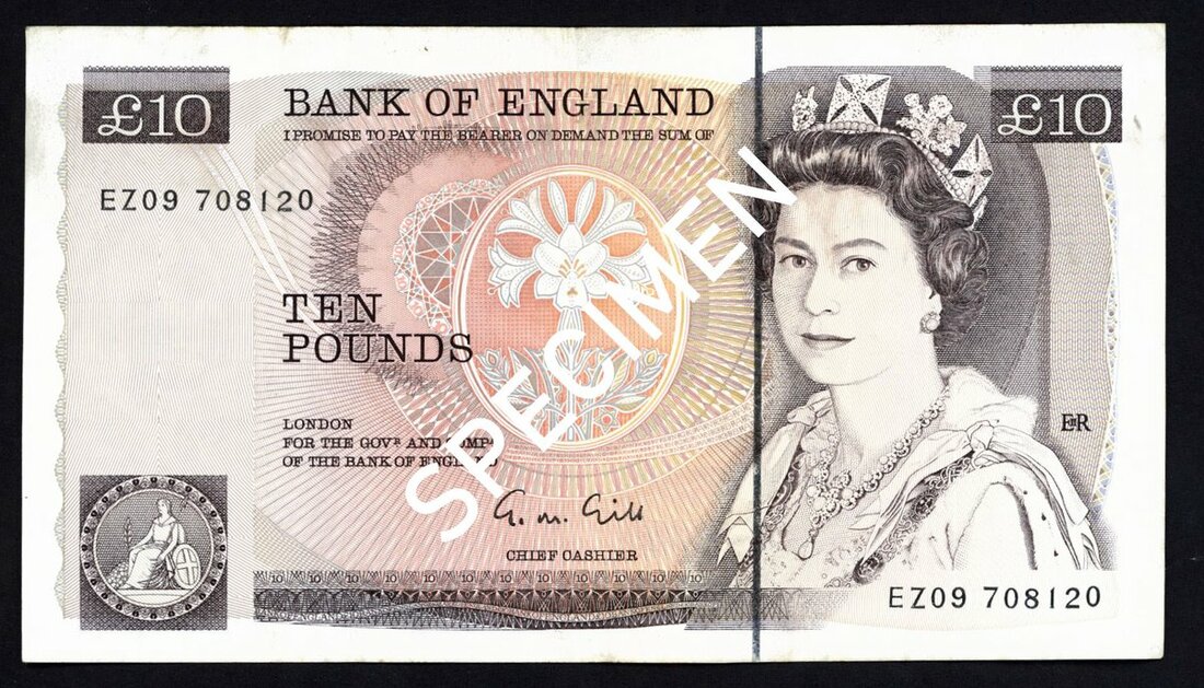 Bank of England, George Malcolm Gill, ERROR £10, ND (1988), prefix EZ09, (EPM B354), security thread overprinted on note, about extremely fine