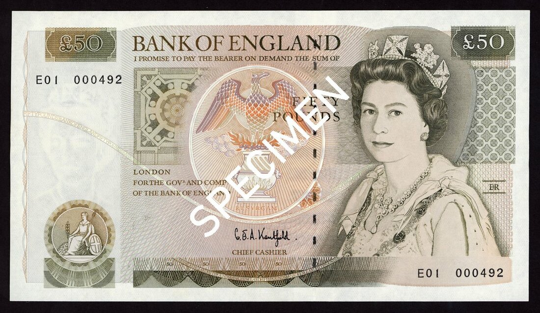Bank of England, Graham Edward Alfred Kentfield, £50, ND (1991), serial number E01 000492, (EPM B261), low number first run, minor handling, about uncirculated