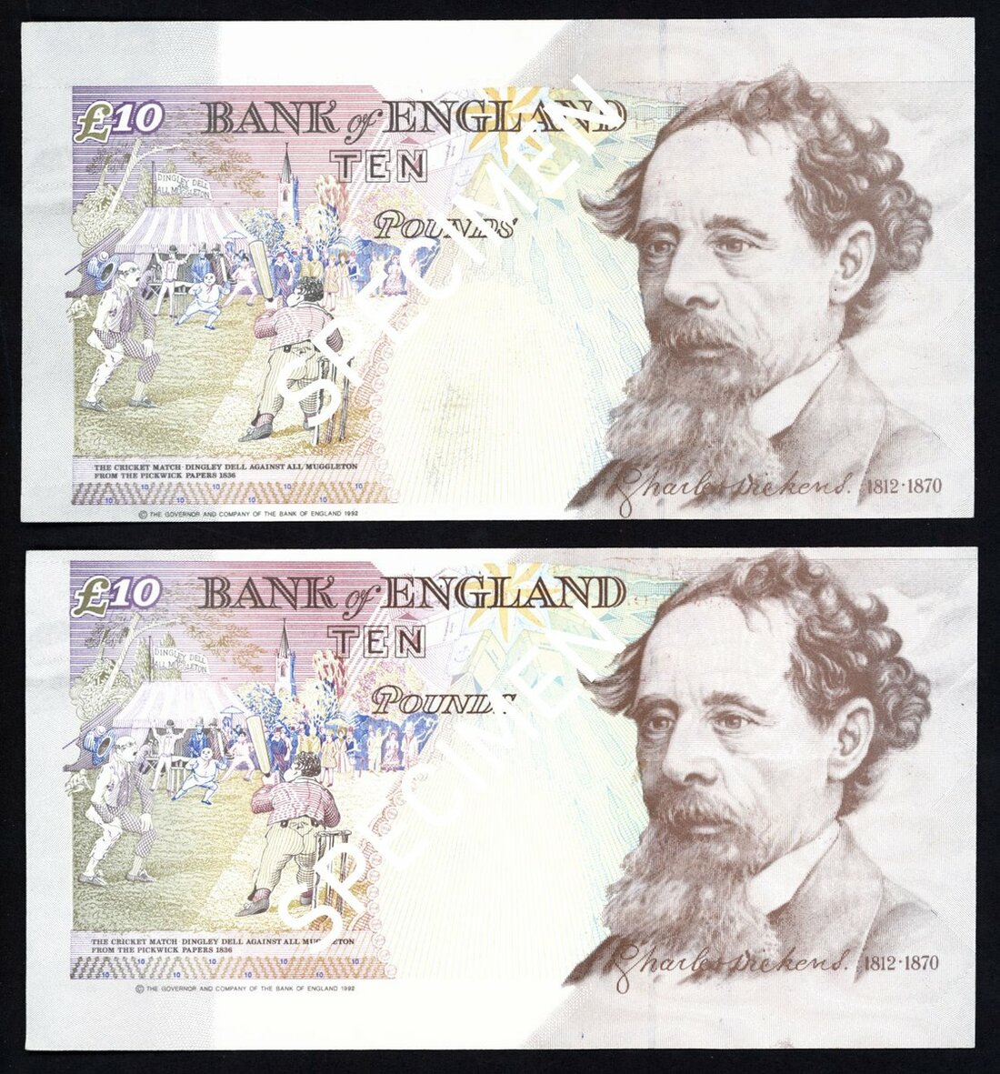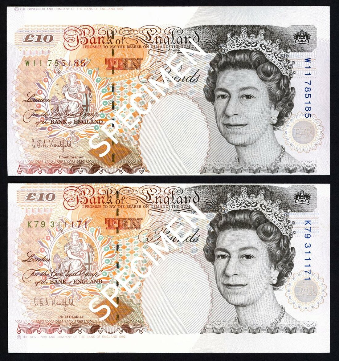 Bank of England, G.E.A. Kentfield, ERROR £10 (2), ND (1992), (EPM B366), misaligned error, about uncirculated (2 notes)