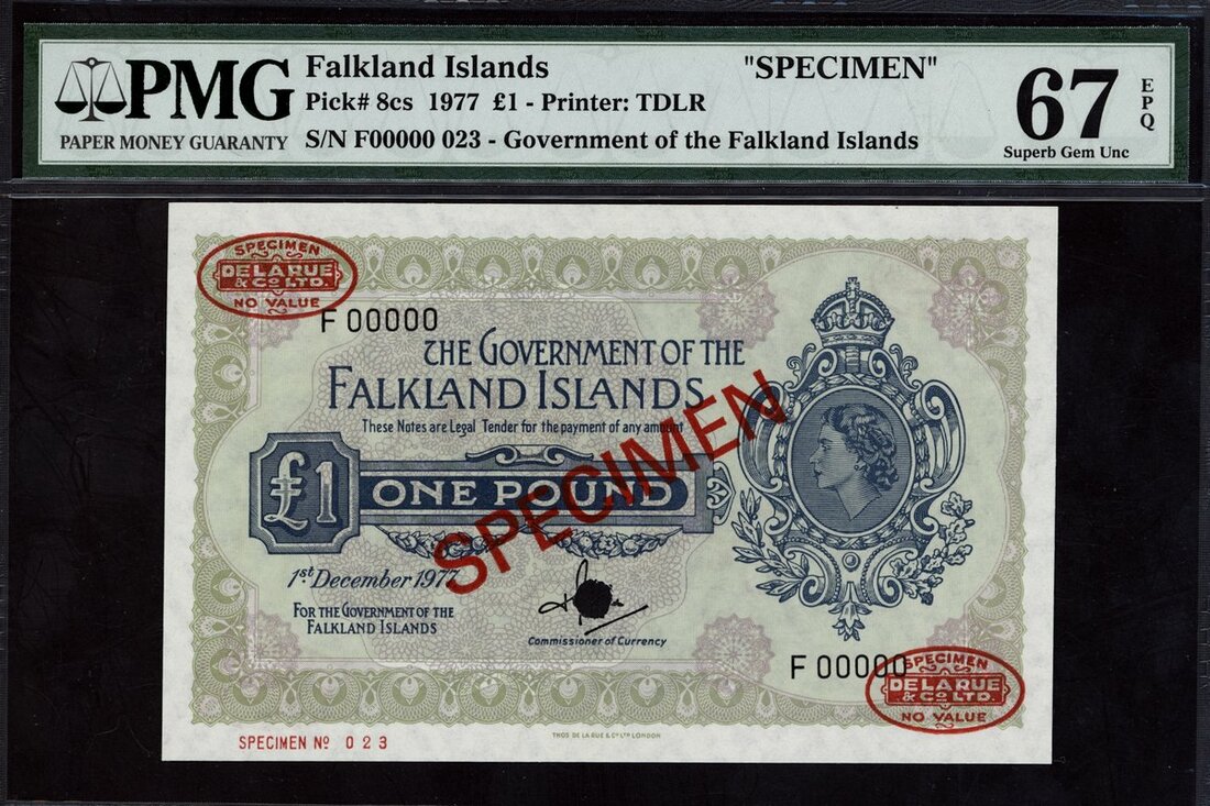 Falkland Islands, specimen £1, 1977, (Pick 8cs, TBB B213s), in PMG holder 67 EPQ Superb Gem Uncirculated