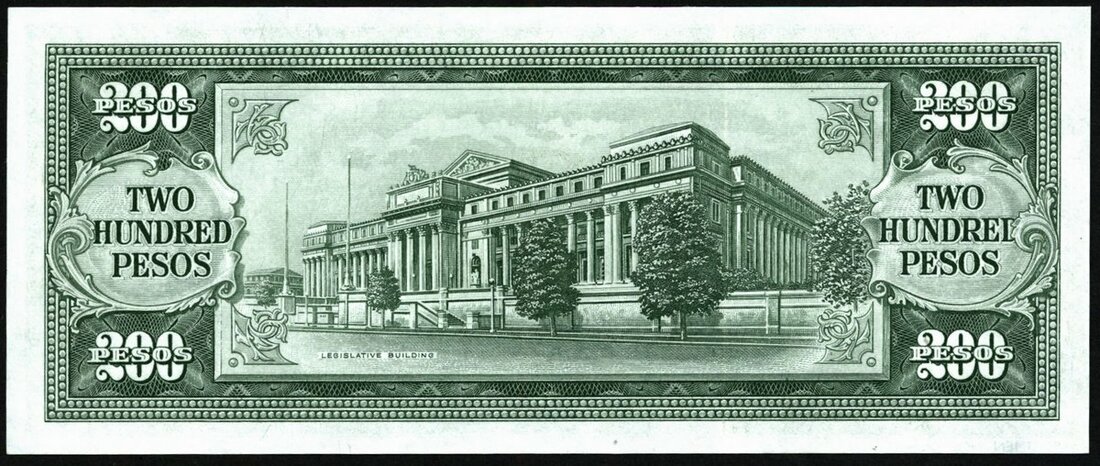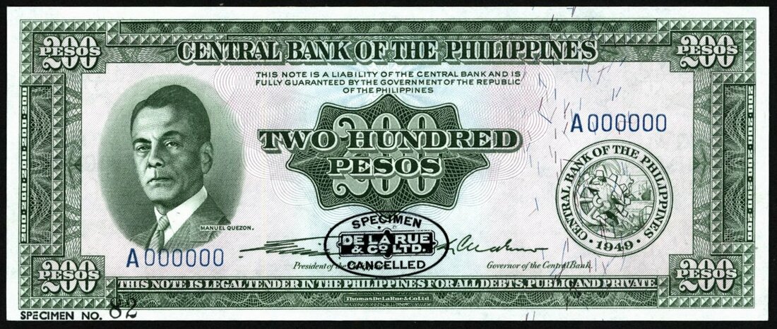 (x) Central Bank of Philippines, specimen 200 pesos, 1949, serial number 0, (Pick 140s, TBB B924s), uncirculated