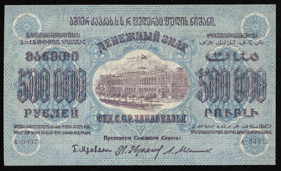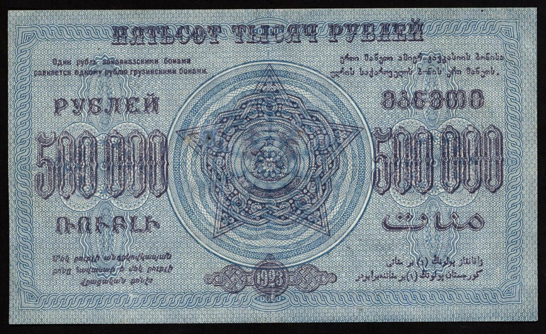 Transcaucasia, Russia, 500,000 rubles, 192, serial number 08073, (Pick S628), about uncirculated