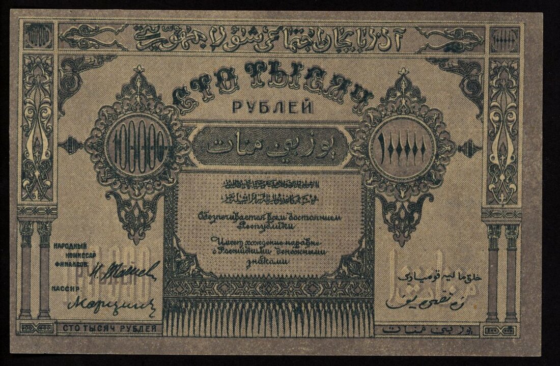 Russia, Transcaucasia, 100,000 roubles, 1921, serial number 0910, (Pick S717a) good extremely fine to about uncirculated
