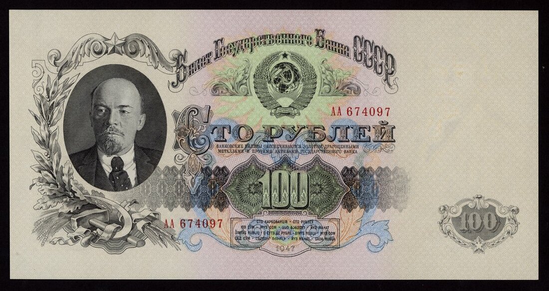 Russia State Bank Note, 100 rubles, 1947, serial number AA 674097, (Pick 232), about uncirculated