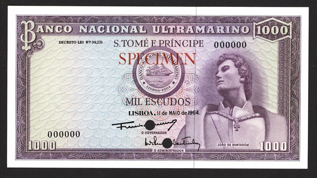 Banco Nacional Ultramarino (St Thomas and Prince), Colour Trial Specimen 1000 escudos, 1 May 1964, (Pick 48cts, TBB B207cts), Uncirculated, scarce