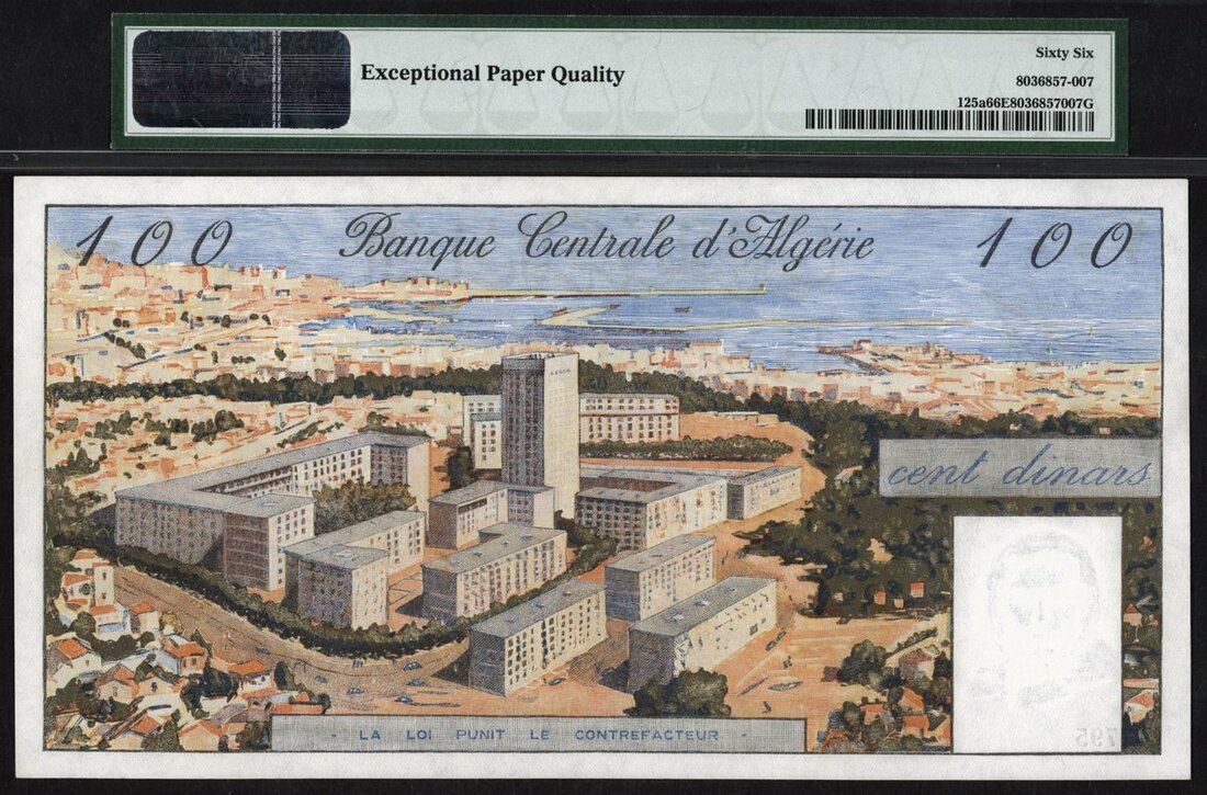 (x) Banque Centrale d'Algerie, 100 dinars, 1964, serial number Z.795 022, (Pick 125a, TBB B304), in PMG holder 66 EPQ Gem Uncirculated, second highest grade with 10 better