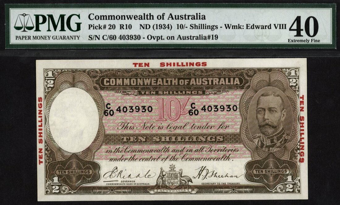 (x) Commonwealth of Australia, 10 shillings, ND (1934), serial number C/60 403930, King George V in Scottish military uniform facing forward