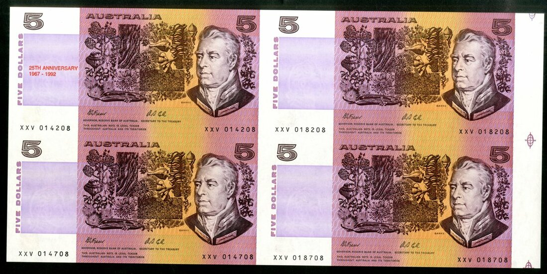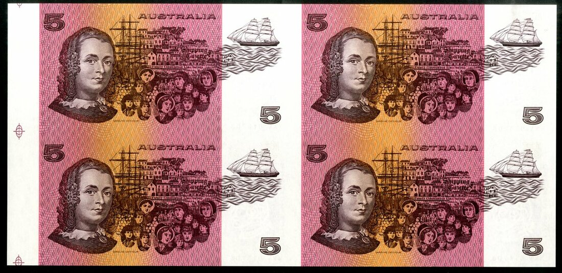 Reserve Bank of Australia, a sheet of 4 $5, ND 1997, (Pick 44 for similar), as made
