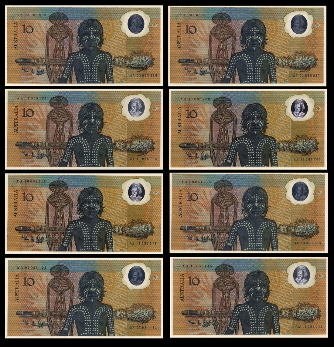 (x) Reserve Bank of Australia, $10 (8), 1988, prefix AA, (Pick 49a), in original presentation folder as issued (8 notes)