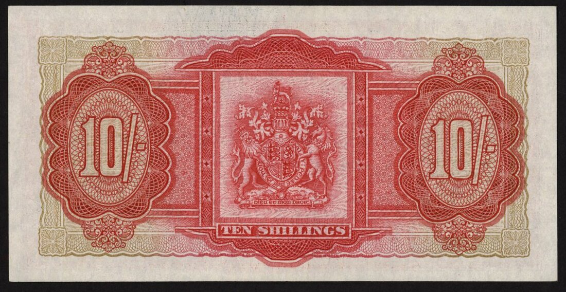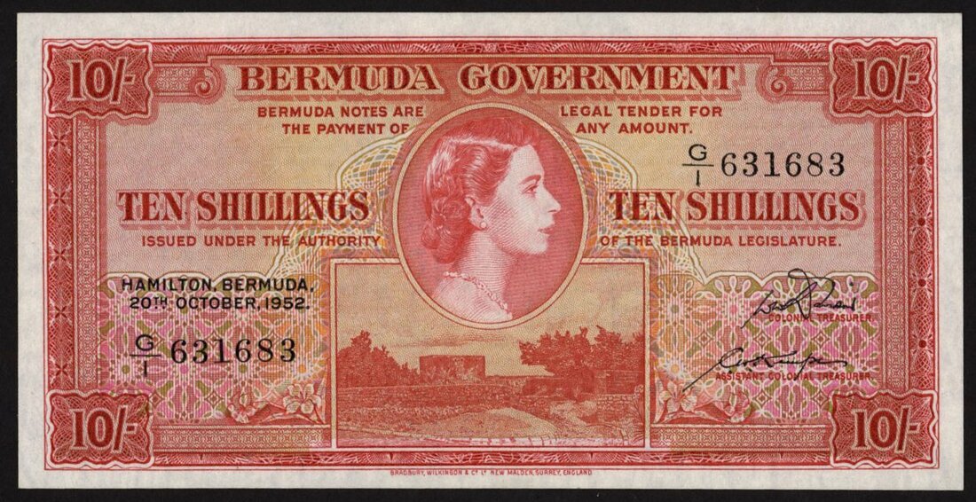 Bermuda Government, 10 shillings, 20 October 1952, serial number G/1 631683, (Pick 19a, TBB B120a), about uncirculated