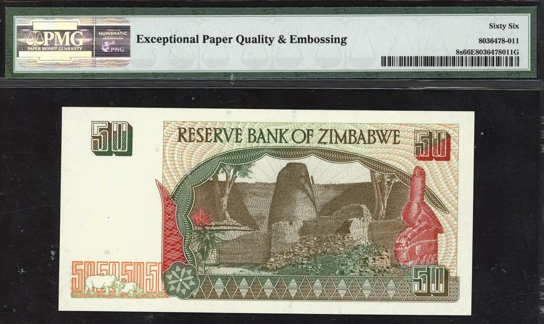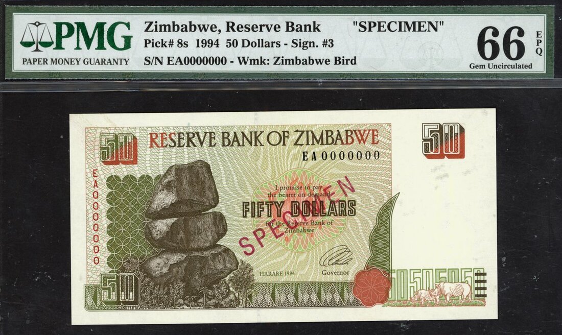 (x) Reserve Bank of Zimbabwe, specimen 50 dollars, 1994, (Pick 8s, TBB B108s), in PMG holder 66 EPQ Gem Uncirculated
