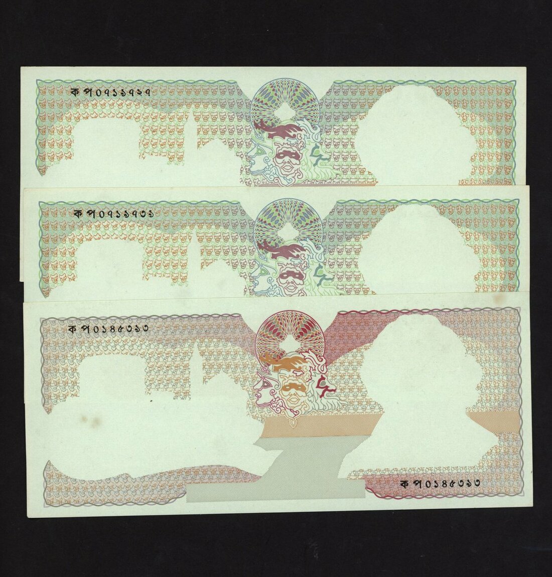 minor handling, one note with minor stain, about uncirculated (3 notes)