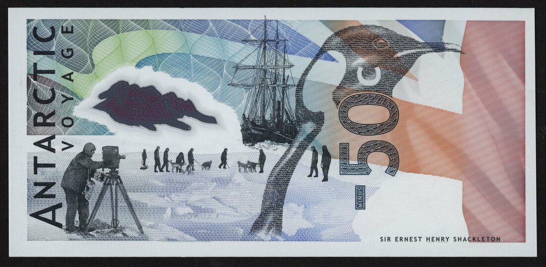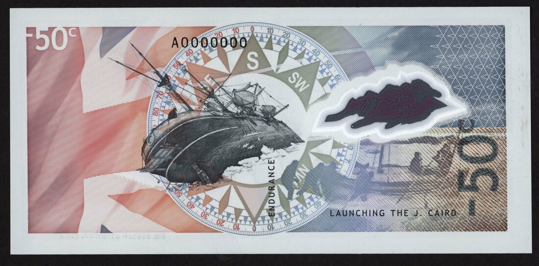 De La Rue Test Note, commemorating Antarctic Voyage, serial number A0000000, written, Endurance, Launching the J. Caird, Sir Ernest Henry Shackleton