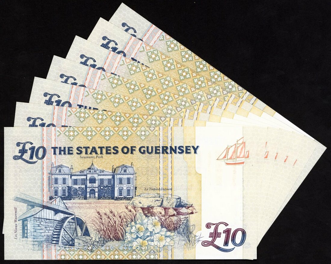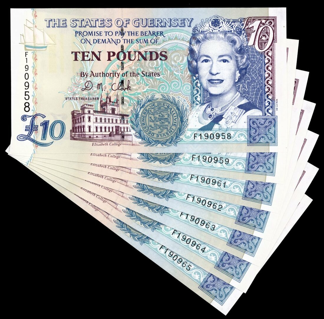 (x) States of Guernsey, consecutive £10 (8), ND (1995), prefix F, signature Clark,